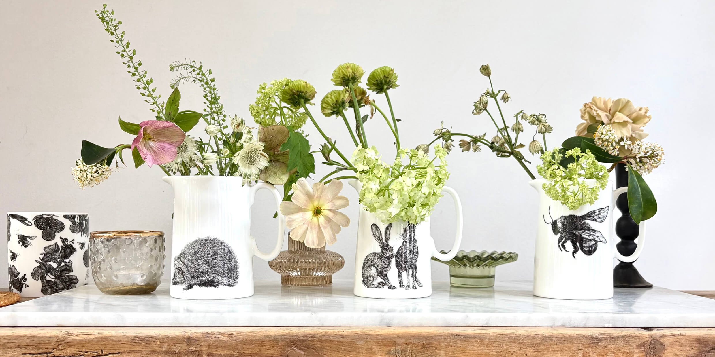 Fine bone china jugs featuring detailed wildlife artwork - a timeless and thoughtful gift, crafted and finished in England.